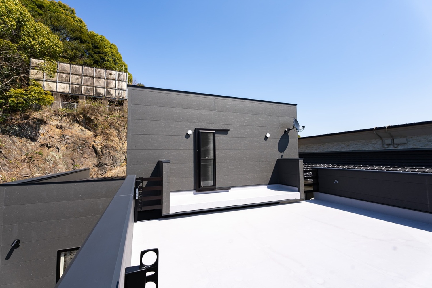 ホーム フォトギャラリー 新築 すべて 屋上での“食事を楽しむ”吹き抜けのあるおうち|宿毛市 屋上での“食事を楽しむ”吹き抜けのあるおうち|宿毛市 新築 2024.3竣工 新築|すべて 倉庫内はOSB合板を使用。 木片を圧着させたもので、DYIで棚を取り付けたいと思っている方にはぴったり。またその際に壁に傷がついたとしてもその傷さえ味になります。画像のみを表示全 20 枚中 1 枚目を表示Next ≫ シューズボックスはYKKap ラフォレスタ玄関収納。 幅1,200㎜、奥行は薄奥行という350㎜で玄関スペースを圧迫しないけれど大容量です。グレーを基調とした空間に合う“ピュアプレーン”を採用されました。画像のみを表示全 20 枚中 2 枚目を表示≪ Prev|Next ≫ リビング階段。 アイアンの手摺がポイントです。画像のみを表示全 20 枚中 3 枚目を表示≪ Prev|Next ≫ キッチンはmiratap (旧sanwacompany) グラッド45。 オールステンレスが特徴的なキッチンです。おうち全体がグレーを基調としており、その雰囲気にも合います。画像のみを表示全 20 枚中 4 枚目を表示≪ Prev|Next ≫ キッチンの後側には引戸付の広い収納スペースが。 調理家電なども、“隠す収納”が可能です。画像のみを表示全 20 枚中 5 枚目を表示≪ Prev|Next ≫ 調理家電を置くことを想定して収納スペースのブロックごとにコンセントを設置しています。画像のみを表示全 20 枚中 6 枚目を表示≪ Prev|Next ≫ LDK。 階段横には開き戸の収納スペース。テレビとテレビ台は壁付け。画像のみを表示全 20 枚中 7 枚目を表示≪ Prev|Next ≫ 吹き抜け。 ブラックのシーリングファン、間接照明をブラックを採用。画像のみを表示全 20 枚中 8 枚目を表示≪ Prev|Next ≫ 吹き抜けの上部にも窓があり、上からもリビングの掃き出し窓からも明るい陽が入ります。画像のみを表示全 20 枚中 9 枚目を表示≪ Prev|Next ≫ キッチン上のライトは施主さま支給品。 グレーの中にゴールドが映えるキッチンになりました。画像のみを表示全 20 枚中 10 枚目を表示≪ Prev|Next ≫ 2階にあがったところには手洗いスペース。 miratap(旧sanwacompany) SUSカリッサ。画像のみを表示全 20 枚中 11 枚目を表示≪ Prev|Next ≫ 2階のウォークインクローゼット。 両側にハンガーパイプがあり、かさ張りやすい冬物も困らず収納できます。画像のみを表示全 20 枚中 12 枚目を表示≪ Prev|Next ≫ 個室。 グレーを基調とした中にブラック系のアクセントクロス。画像のみを表示全 20 枚中 13 枚目を表示≪ Prev|Next ≫ 倉庫の屋上には出られるように。 施主さまのはじめからのご希望でした。屋上で食事が出来るように、またこちらで洗濯物を干せられるように洗濯バーも設置しました。画像のみを表示全 20 枚中 14 枚目を表示≪ Prev|Next ≫ 屋上。 撮影時、天気のよい快晴でとても気持ちのいい場所でした。画像のみを表示全 20 枚中 15 枚目を表示≪ Prev|Next ≫ 1階トイレは、TOTO FD(フロートタイプ)。 壁掛けタイプのトイレで、こちらの写真では少し分かりづらいですが、床から浮いたトイレになっています。 床から浮いているので掃除がしやすくなっています。画像のみを表示全 20 枚中 16 枚目を表示≪ Prev|Next ≫ 洗面脱衣室。 洗面ボウル:miratap(旧sanwaconpany) モルタナ洗面900鏡:miratap(旧sanwacompny) ステムズミラーボックスタイル:名古屋モザイク工業 エリアボーダー彩 LB-123黒マット ホスクリーンも設置しており、洗濯物も干すことが可能です。画像のみを表示全 20 枚中 17 枚目を表示≪ Prev|Next ≫ 洗面横には外に出られるドアが。 アウトドアを楽しんだ後、そのまま洗面室に出入りできすぐにシャワーを浴びることができる間取りです。 洗濯洗剤などストックを収納するのにもタオルを収納するのにも困らない広い収納棚も。画像のみを表示全 20 枚中 18 枚目を表示≪ Prev|Next ≫ お風呂は、TOTO シンラ。 ブラックを基調にしたお風呂です。画像のみを表示全 20 枚中 19 枚目を表示≪ Prev|Next ≫ 外観。 四角でカラーもブラックのためスタイリッシュが際立つおうちになりました。画像のみを表示全 20 枚中 20 枚目を表示≪ Prev もっと事例が見たい方におススメ 一冊、一冊手づくりの施工例集をお届けします。 当社では 『住まいの参考書』という施工例集 をお届けしています。 外観編・内観編の2冊セットで、実際のおうちの写真のみを収録。 広告用ではなく、 これからおうちづくりをされる方の “本当の参考書”になるようにつくっています。 ご家族でゆっくりご覧いただけます。 資料請求はこちら 一覧へ戻る 新築 リフォーム・リノベーション すべて ~建坪30坪 建坪31~40坪 建坪40坪~ 平屋 すべて LDK 浴室 洗面脱衣室 トイレ 洋室 和室 耐震工事 その他